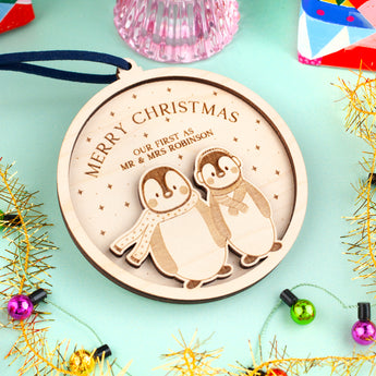 This fully personalisable, beautifully engraved, christmas tree decoration is the perfect way to add a special touch to your festive celebrations, and celebrate by gifting a cute decoration to a special couple.