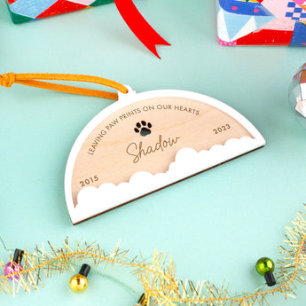 Remember a special pet this Christmas with this beautiful clouds and pawprint tree decoration.