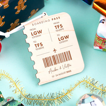 Commemorate a special journey with this unique engraved Boarding Pass bauble, the perfect keepsake for celebrating travels, reunions, or adventures shared.