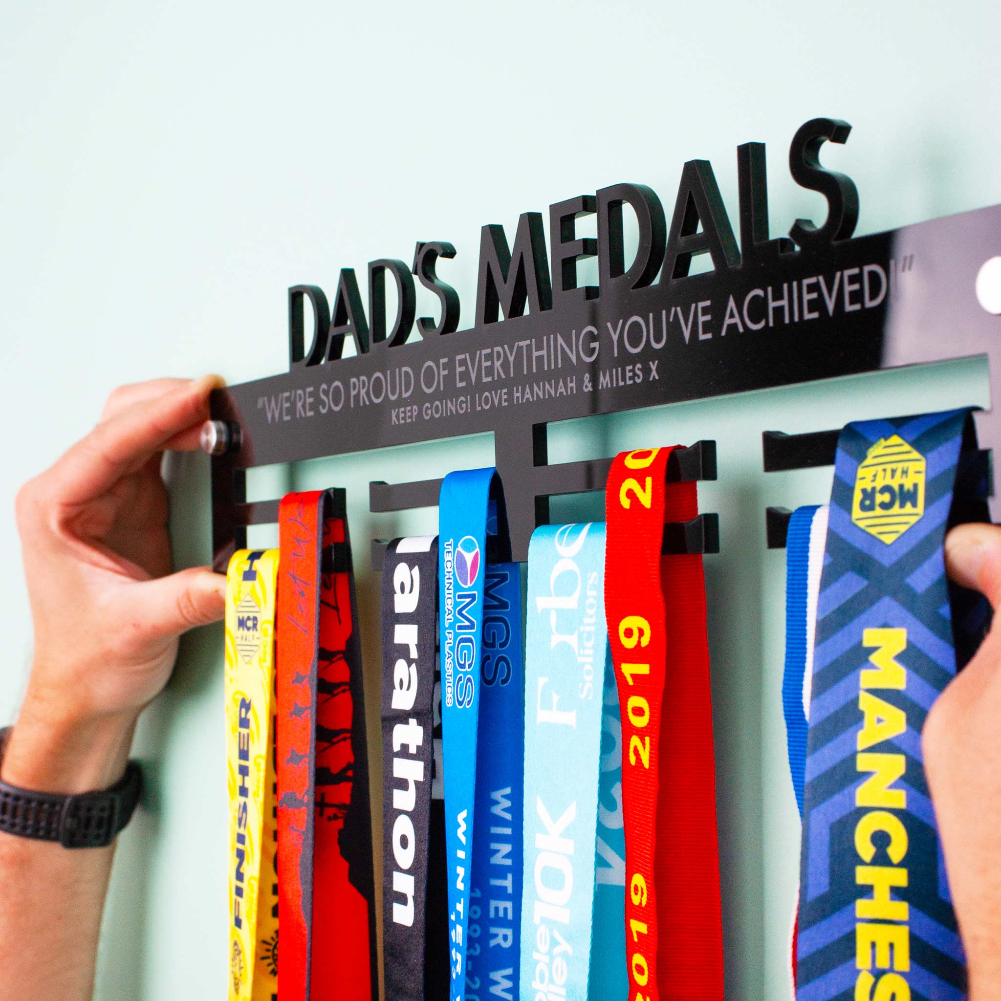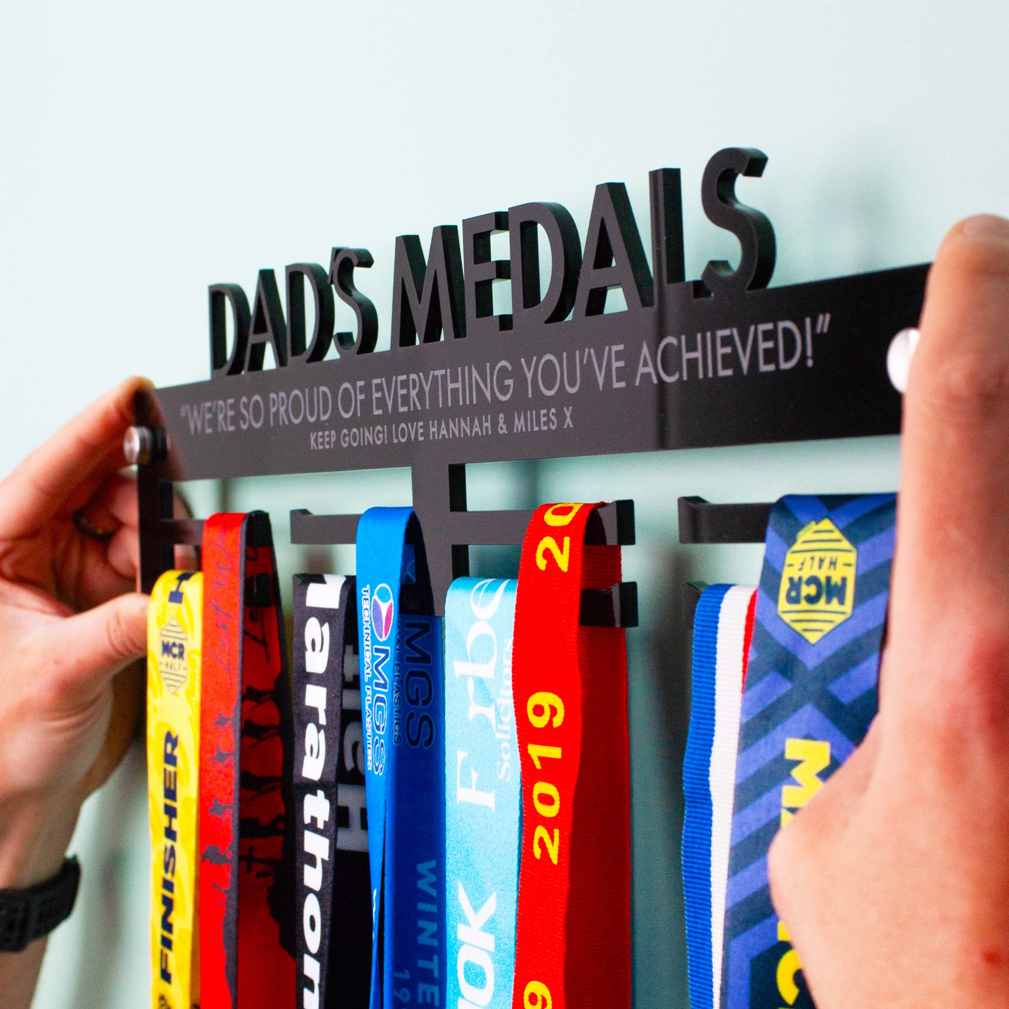 - Add an engraved personalised message that will always sit proudly above the medals, no matter how many they earn!